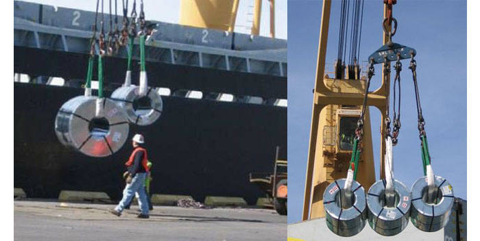 通盤鋼卷專用吊帶加裝CornerMax®護(hù)套后完全勝任港口貨物的裝卸搬運(yùn)作業(yè):