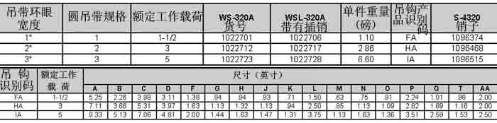 備注:試驗(yàn)載荷最大為2.5倍的額定工作載荷;破斷載荷平均為額定工作載荷的5倍。