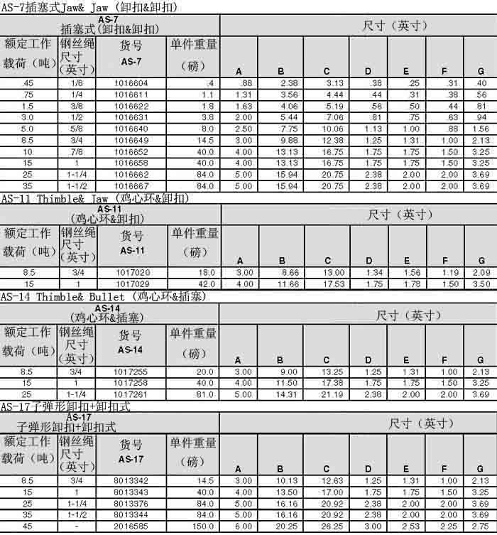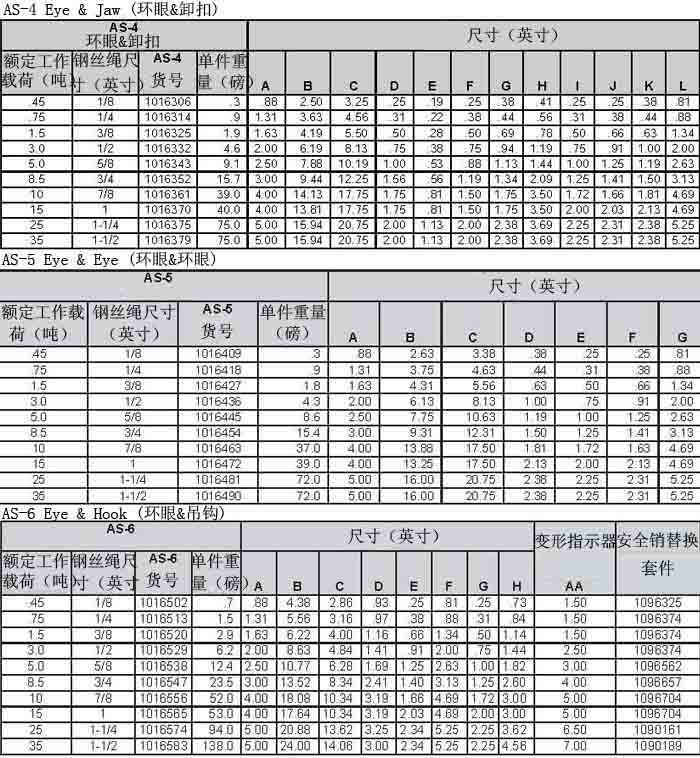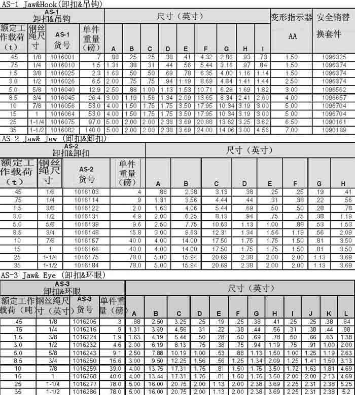 備注:極限工作載荷為5倍的額定工作載荷。