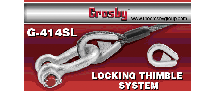 現(xiàn)場作業(yè)時,我們經(jīng)常會發(fā)現(xiàn)有人私自以尺寸規(guī)格不匹配甚至是質(zhì)次的卸扣來替代正常操作使用。從作業(yè)安全的角度來講,這是十分危險的,因?yàn)樗菀讓?dǎo)致作業(yè)中的整條鋼絲繩索具或整個吊索具系統(tǒng)產(chǎn)生結(jié)構(gòu)性的不穩(wěn)定趨勢。為防止出現(xiàn)這樣的安全風(fēng)險,我們推出了G-414SL雞心環(huán)鎖止系統(tǒng)。通過使用帶有鎖止功能設(shè)計(已獲得專利)的雞心環(huán),我們可以防止已加工好的成套鋼絲繩索具上的原裝卸扣被人為故意拆卸掉,這樣方可保證整條鋼絲繩索具在使用時其整體結(jié)構(gòu)的完整性和穩(wěn)定性。