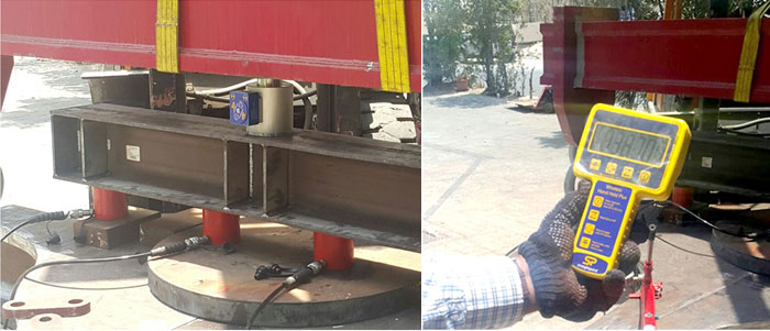 卡施達(dá)爾阿聯(lián)酋公司用四臺(tái)液壓缸設(shè)備和一臺(tái)速得無線壓力傳感單元為其客戶完成了一項(xiàng)夾鉗負(fù)荷測(cè)試工作。