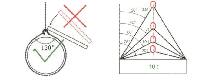 ▶ 好的結(jié)索方式可以保證負(fù)荷物在落地之前的移動(dòng)過(guò)程中始終保持穩(wěn)定和安全,而且不會(huì)對(duì)負(fù)荷物本身、吊裝設(shè)備以及其他人員的生命財(cái)產(chǎn)安全帶來(lái)?yè)p害。▶ 確定負(fù)荷物的重量,保證結(jié)索方式的恰當(dāng),并且查看吊索具及其連接輔件有無(wú)明顯缺陷問(wèn)題。提前預(yù)留出負(fù)荷物落地的區(qū)域空間,保證此區(qū)域的地面有足夠的承重能力。生產(chǎn)廠家提供的具體建議和要求也必須采納。▶ 保證負(fù)荷物上的起吊點(diǎn)在其重心以上的位置,任何松弛或松散的部分都必須加以緊固或拆掉。對(duì)于起吊點(diǎn)上的連接部件,必須保證吊鉤或卸扣等輔件連接緊固。整個(gè)吊索具上不得有任何打彎、打結(jié)或自行纏繞現(xiàn)象出現(xiàn)。▶ 負(fù)荷物的邊角處必須用護(hù)墊或采取其他保護(hù)措施加以保護(hù),防止其與吊索具直接接觸而造成負(fù)荷物或吊索具的損壞。▶ 不得超過(guò)吊索具上標(biāo)注的安全工作載荷(SWL)和吊鏈角度。采用環(huán)形封閉吊法時(shí),套環(huán)角度不得超過(guò)120°。 ▶ 不得利用外力敲擊或拉拽鋼絲繩索具或其連接輔件以固定安裝到位,必須通過(guò)正確方法進(jìn)行結(jié)索。▶ 當(dāng)起重吊鉤上需要懸掛多肢吊索時(shí),必須使用主環(huán)或卸扣以避免繩索或吊帶在吊鉤上卡結(jié)。▶ 使用規(guī)范的手勢(shì)信號(hào)指揮起重吊裝操作。▶ 查看負(fù)荷物的上方有無(wú)任何障礙物,如電線等。▶ 相關(guān)人員與負(fù)荷物之間保持一定安全距離,保證負(fù)荷物在移動(dòng)過(guò)程中不會(huì)纏繞或絆倒工作人員。