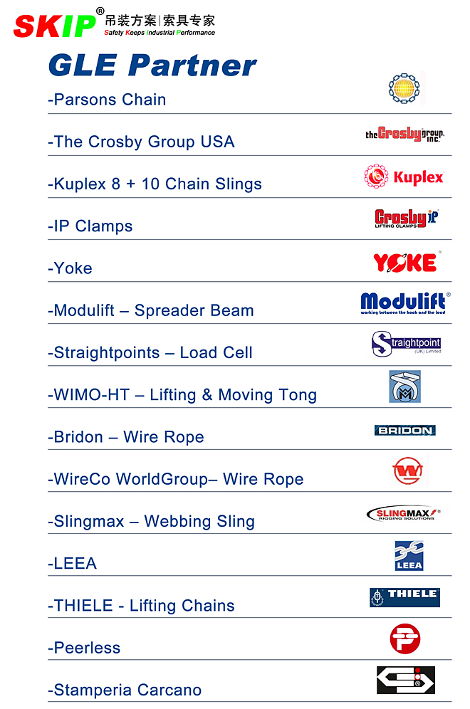 鄭重聲明:m.jefpa.cn為我公司合法合規(guī)官方網(wǎng)站。 GLE為美國CROSBY及英國Straightpoint在中國大陸合作伙伴, 進口Kuplex8+10品牌索具系列輔件產(chǎn)品國內(nèi)供貨商!假冒偽劣者請注意國外制造商可能發(fā)起的知識產(chǎn)權(quán)法律訴訟風險。 凡屬利用我公司SKIP品牌提供相關(guān)產(chǎn)品與服務(wù)業(yè)務(wù),請及時與我司進行真實性驗證。驗證郵箱:郵箱:info@skiplifting.com。