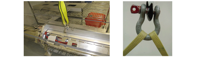 — 如采用雙肢或多肢結(jié)索結(jié)構(gòu)進行起吊作業(yè),嚴禁使用圓柱 銷卸扣,因為這樣可能會產(chǎn)生側(cè)向負載。