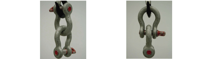 — 圓柱銷卸扣可以應用于捆扎、拖拽、懸吊和垂直起吊這類情況,要求施力方向必須和卸扣中心鉛垂線嚴格保持一致。