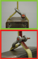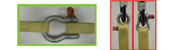 — 采用穿套吊法時,索具分肢上的封閉節(jié)點必須與卸扣本體的弧頂位置而不是安全銷接觸。