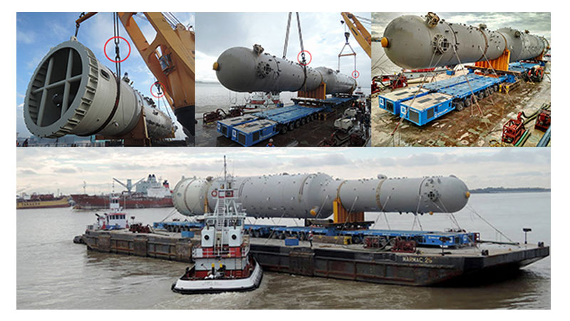 Duprey先生說,這兩套設(shè)備在中國進(jìn)行裝載作業(yè)時(shí)所掌握的駁船負(fù)載重量信息非常不準(zhǔn)確。因此,為了安全起見,我們在設(shè)備抵達(dá)目的港后,想再次對設(shè)備的重量進(jìn)行一次準(zhǔn)確的測量。僅就保障項(xiàng)目作業(yè)安全的方面而言,速得測力環(huán)顯示了其突出的重要性。更重要的是,當(dāng)我們用速得測力環(huán)經(jīng)過實(shí)際測重后,確認(rèn)了我們實(shí)際測得的設(shè)備重量數(shù)據(jù)和制造商文件上提供的數(shù)據(jù)信息是一致的,這也就說明駁船起重機(jī)上監(jiān)測到的儀器數(shù)據(jù)是不準(zhǔn)確的。 Duprey said: “The load cells were crucial given that when we loaded the absorption tower and flash vessel in China the lift weight in the barge was drastically inaccurate so for safety reasons we wanted to weigh them again in New Orleans. Importantly, when we used the load cells to weigh the items at the port, the weight matched the documents of the manufacturer which told us that the measurements recorded by the barge crane instruments were incorrect.”